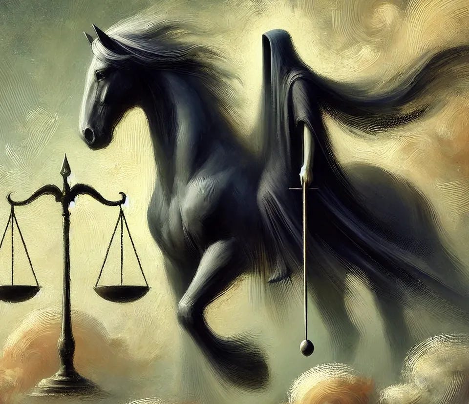 📖 “When He opened the third seal, I heard the third living creature say, ‘Come and see.’ So I looked, and behold, a black horse, and he who sat on it had a pair of scales in his hand. And I heard a voice in the midst of the four living creatures saying, ‘A quart of wheat for a denarius, and three quarts of barley for a denarius; and do not harm the oil and the wine.’” (Revelation 6:5–6)